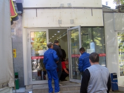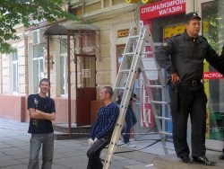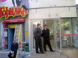 Помимо них, на месте была группа молодых людей, которые давали указания рабочим, каким образом демонтировать торговое помещение.