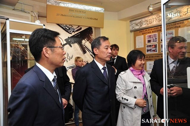 Шичуань Ван возглавил делегацию университета уголовной полиции, состоявшую из 6 человек. В первый день своего пребывания в Саратове китайская делегация, в состав которой, помимо президента КУУП, входили вице-президент университета Ян Минь, декан факультета расследования экономических преступлений Чен Ксянгмин, заместитель декана факультета расследования уголовных преступлений Ша Гуйхун, профессор факультета базового образования Лиу Ксяойан, доцент этого факультета Жаи Йу и сотрудник Академии общественных наук КНР Хэ Минцзюнь, посетила музей истории академии права. В ходе экскурсии гости узнали много интересного о создании вуза, о работавших в нем юристах и выпускниках, чьи имена стали известны во всем мире и современной истории СГАП. В тот же день гости смогли ознакомиться с ФОКом академии, музеем криминалистики, а также отделом редких книг научной библиотеки СГАП. Затем, во время встречи с ректором академии права, профессором Сергеем Сурововым членам делегации были вручены памятные подарки.