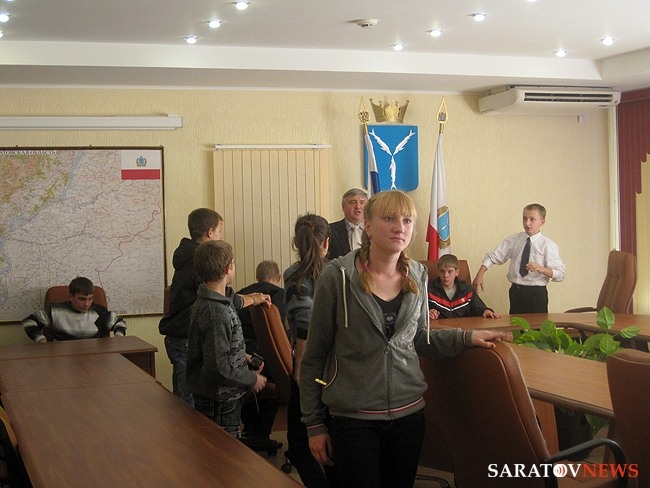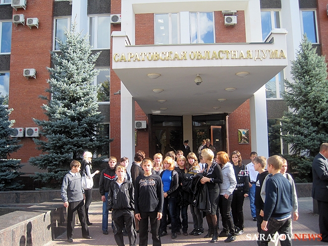 В Саратовской областной думе состоялась экскурсия учащихся 8 и 9-х классов Калининской санаторной школы-интерната. Дети посетили зал заседаний.