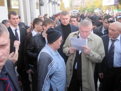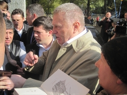 Уже выйдя за пределы рынка лидер "ЛДПР" в очередной раз призвал граждан идти на выборы и голосовать за его партию, после чего, немного поругав чиновников, сел в автомобиль с тонированными стеклами и выехал, как рассказали Saratovnews присутствующие на месте сотрудники пресс-службы партии, в аэропорт.