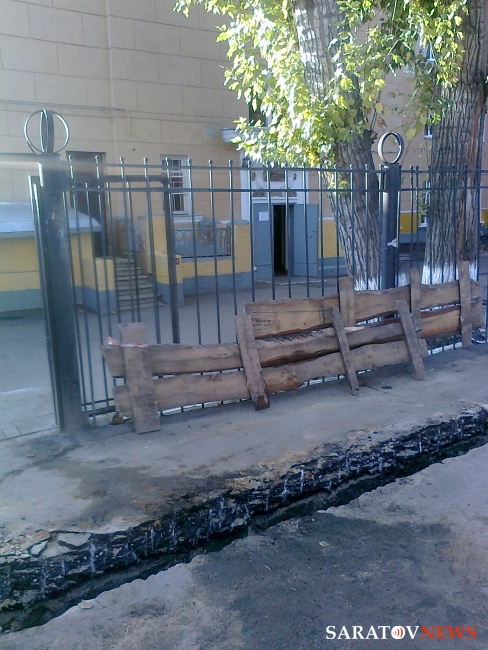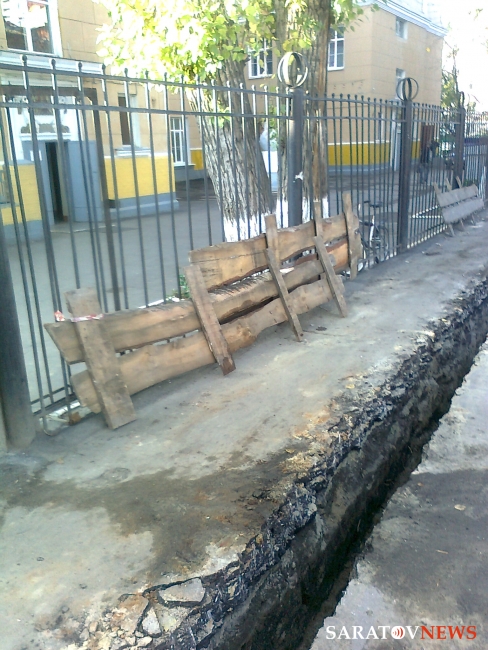 Траншея глубиной полметра и шириной 40 см, выкопана для проведения ремонтных работ и тянется от Бабушкиного взвоза до Саратовского научно-исследовательского института травматологии и ортопедии. Эта зона никак не огорожена, досок, по которым можно перейти яму, нет.