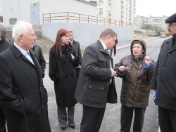 В ходе осмотра микрорайона одна из местных жителей пожаловалась инспекции на отсутствие уличного освещения и на работу своей управляющей компании. "Сколько раз ходила (в управляющую компанию), просила, чтобы сделали поручни, чтобы с пандусов не падали пожилые люди и дети. Даже это не могут сделать. Света (на улице) у нас целый год нету. Сейчас включат детский садик и все. Фонари не работают. В домах свет тоже отключают", - рассказала членам делегации пожилая женщина.