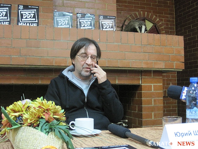 27 октября известный российский музыкант Юрий Шевчук прибыл в Саратов с новой программой "Иначе", состоящей из 28 песен. Сразу по прибытию он встретился с представителями прессы.