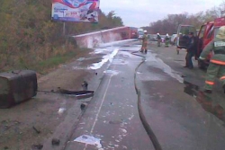 "Бензовоз перевернулся, там все заливали пеной. Автобус пострадал настолько сильно, что невозможно разобрать его марку; он весь обгоревший", - утверждают очевидцы.