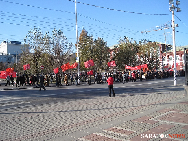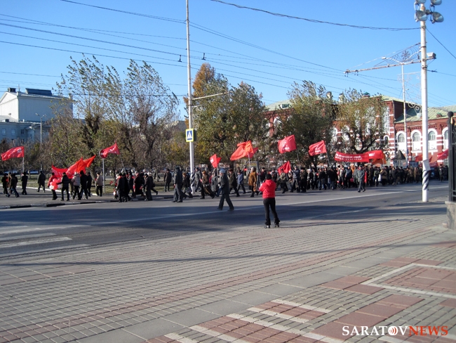 В эти минуты на Театральной площади Саратова проходит митинг КПРФ. Около 500 активистов, с транспорантами, флагами и растяжками собрались на центральной площади города.