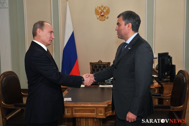 "Вячеслав Викторович, Вам про Саратовскую область рассказывать не нужно – Вы сами оттуда, знаете там ситуацию очень хорошо, людей знаете, знаете проблемы области. И я не сомневаюсь, что Вы найдёте такую тональность и такие аргументы, которые будут людьми восприниматься. И это будет открытый, честный, прямой диалог с людьми, который, на мой взгляд, должен дать положительные результаты. Я хочу Вам пожелать успехов", - сказал Путин, вручая Володину удостоверение кандидата в депутаты Госдумы.