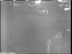 1) мужчина, европеец на вид 20-25 лет, среднего роста, худощавого телосложения, волосы светлые короткие, носит солнцезащитные очки. Был одет: куртка – ветровка темного цвета, толстовка с капюшоном светлого цвета, брюки-джинсы, кроссовки со светлыми полосами.