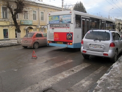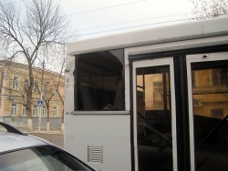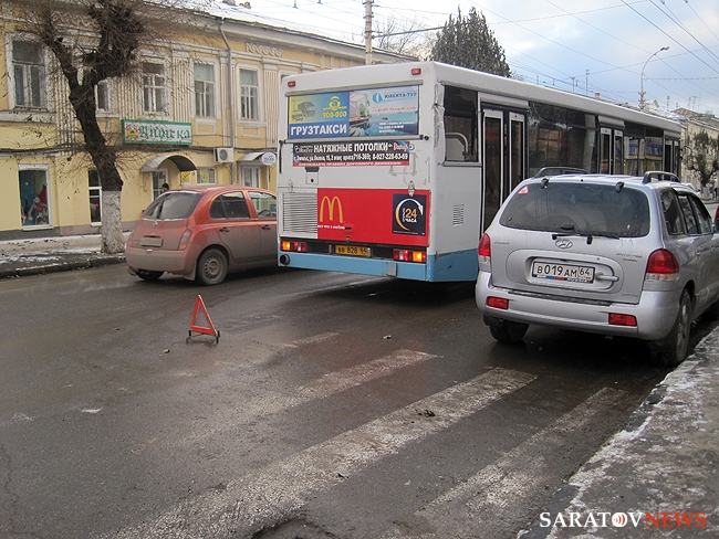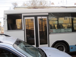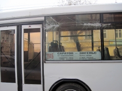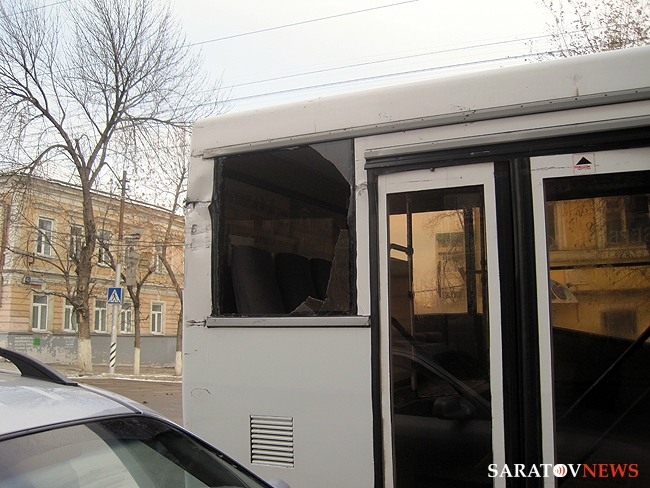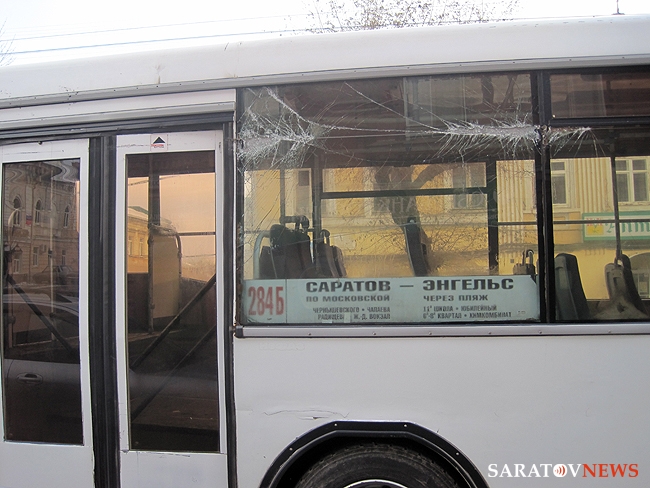 Менее получаса назад около 9.15 в Волжском районе Саратова в автобус маршрута №284"Б" врезался кран. По сведениям очевидцев, пассажиры в результате столкновения травмы не получили, но у автобуса выбито заднее боковое стекло, а также пострадало стекло возле двери.