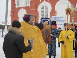 После этого начался крестный ход, в котором участвовали казаки, священнослужители, присягнувшие на службу кадеты и их родители, всего более 100 человек. Около 13.00 колонна дошла до городского дома культуры, где началась основная часть мероприятия - казачий круг.