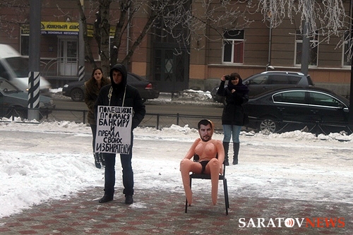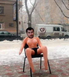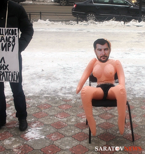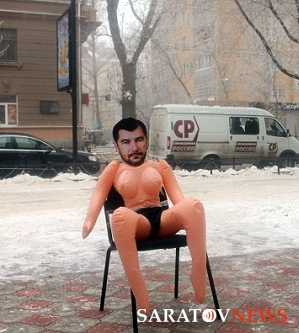 Неожиданным участником акции стала надувная кукла из секс-шопа с наклеенной фотографией лидера саратовского отделения "Справедливой России".