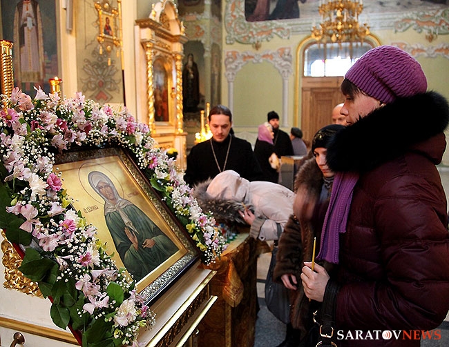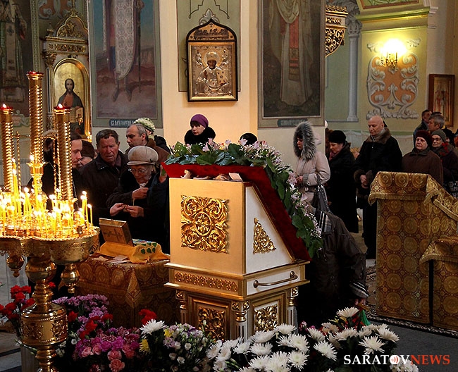 В ночь с 14 на 15 декабря ковчег с частицей мощей святой блаженной Матроны Московской был доставлен в храм в честь Покрова Пресвятой Богородицы Саратова. Он был доставлен в область 20 ноября из Новомосковского Свято-Успенского мужского монастыря Тульской епархии.