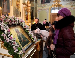 По окончании Божественной литургии клирик Покровского храма священник Ярослав Коздринь совершил молебен с акафистом святой блаженной Матроне Московской. На богослужении молились прихожане храма и жители города.