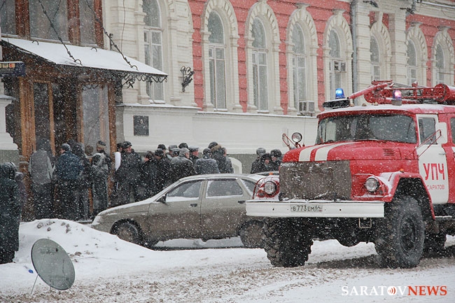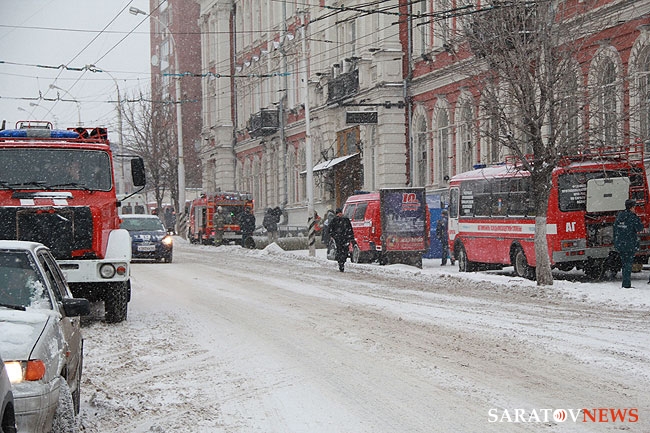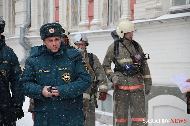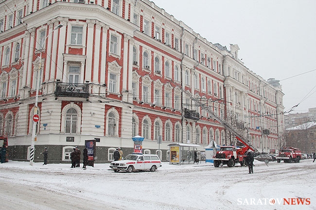 19 декабря около 15.00 проводились пожарные учения на здании Управления Приволжской железной дороги, расположенном на улице Московской, 8. Как сообщил начальник службы пожаротушения. и проведения аварийно-спасательных работ ГУ МЧС России по Саратовской области Дмитрий Фролов, по тактическому замыслу загорание происходило в цокольном этаже в библиотеке на площади 68 квадратных метров.