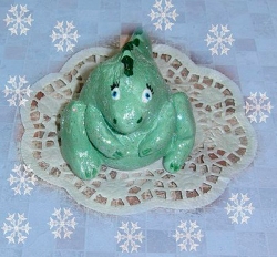 Дракона можно оставить съедобным, а можно покрасить - тогда расписываем акриловыми или гуашевыми красками и покрываем лаком. На свежий невысохший лак можно посыпать блестки. Дракона, окрашенного гуашью, покрывать лучше нитролаком или лаком для ногтей, акриловый лак может размазать рисунок, нанесенный гуашью.