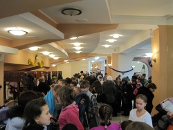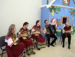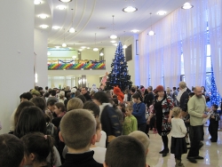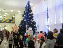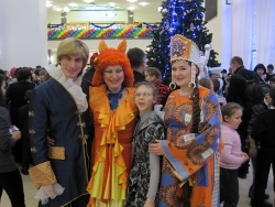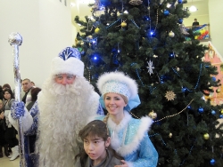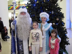 Для них была организована программа с участием костюмированных актеров и народных ансамблей.Каждый желающий мог сфотографироваться на память с дедом морозом и снегурочкой. Основной частью "елки" стал показ детского фильма.