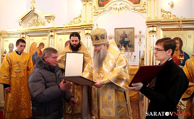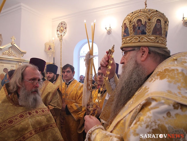 На малом входе Божественной литургии за труды во благо Святой Церкви клирик Свято-Троицкого собора Вольска священник Георгий Проценко был удостоен очередной награды - права ношения наперсного креста.