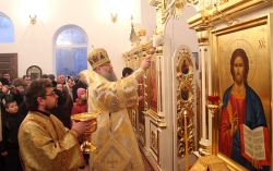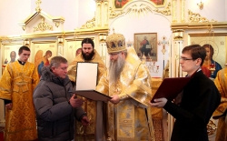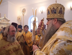 "Сегодня, совершая Великое освящение этого храма, мы молились о том, чтобы Господь утвердил его до скончания века, - сказал, в частности, Владыка Лонгин в своем Архипастырском слове по окончании богослужения. - Мы молились о том, чтобы никогда больше на нашей земле не совершались те чудовищные преступления, когда люди собственными руками уничтожали и оскверняли свои святыни. И самое главное, о чем мы молились сегодня - это о том, чтобы как можно больше людей приходило в этот храм, чтобы он был для каждого местом встречи с Богом. Ведь храм - это не просто красивое здание. Храм - это место, где мы входим в жизнь вечную в Таинстве Святого Крещения; это место, где мы соединяемся с Господом в других Таинствах, в особенности, в Таинстве Исповеди и Святого Причащения. Храм - это место, где благословляется супружество, и место, откуда человека провожают в путь всея земли".