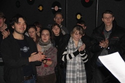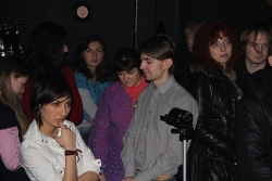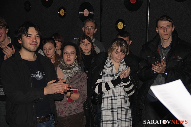 Поэтический вечер длился 4 часа, выступили 27 человек, и слушателей собралось совсем немало. На встречу пришел Михаил Медведев, известный в Саратове поэт и музыкант, который трудится в настоящее время в Радищевском музее. Кроме того, были: Светлана Мыльникова (Потаня), водитель трамвая; студент-медик Павел Косов, занявший 2 место в литературном конкурсе памяти братьев Шнитке; Владимир Лазарев - 1 место конкурса Шнитке; Мария Бунтарская - поэт и фотограф; самый молодой участник вечера 15-летний Тимофей Зеленский, Светлана Шешукова - аспирант, готовится к защите кандидатской по радиофизике; Елена Зарькова - организатор вечера и ведущая поэтической площадки Времени Колокольчиков 2011 (фестиваль аккустической музыки), а также Владимир Илюшкин, Сергей Отшельник, Антон Палченков, Александр Кривоножкин, Алексей Грибель - выступает в Абриколе; Дания Муртазина; Никита Дмитриев; Алексей Сажнев; Татьяна Богомаз; Анастасия Дуванова; Алексей Кац. Из клуба "Дебют" выступили руководитель Михаил Богатов, Юрий Щекотов, Сергей Зотов, Барсук Гролл, Светлана Зеленкина.