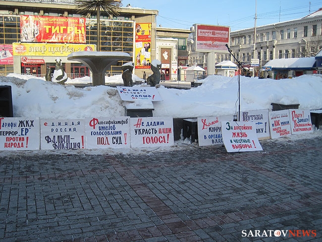 21 января в Саратове состоялся очередной митинг несогласных с результатами выборов в Государственную Думу РФ. В акции приняли участие менее 50 человек.