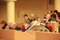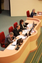"Три минуты", - предупредил о продолжительности выступления председатель регионального парламента.
