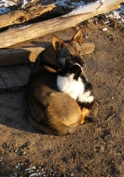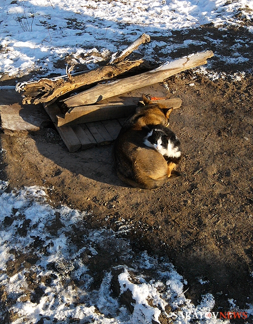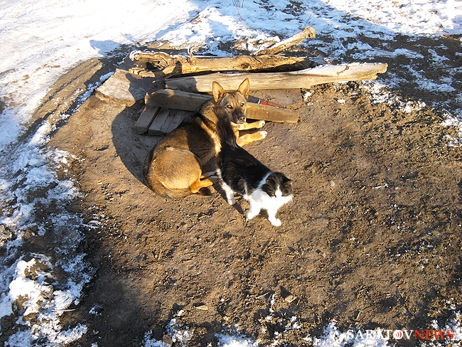 В Энгельсе прохожие стали свидетелями необычной сцены. Собака и кошка, спасаясь от мороза, прижались друг к другу, согреваясь теплом извечного природного соперника.