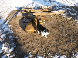 Животные выбрали место неподалеку от жилых домов на солнце, в том месте, где под землей проходит теплотрасса, и сошел снег. На одном из фото видно, как кошка и собака соприкасаются носами, что подтверждает взаимное доверие столь разных особей.