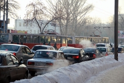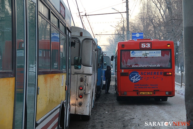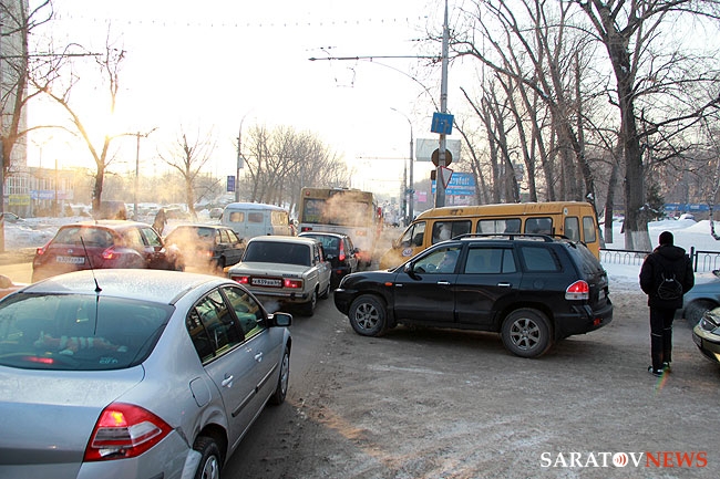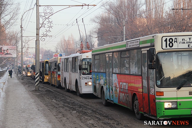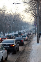 В эти минуты от 1-й Дачной до делового центра "Навигатор" в Кировском районе Саратова образовалась крупная пробка. Остановлено движение в сторону центра по проспекту 50 лет Октября, без движения улица Тракторная. Вот уже более часа несколько десятков автобусов и троллейбусов не могут пробиться в центральную часть города.
