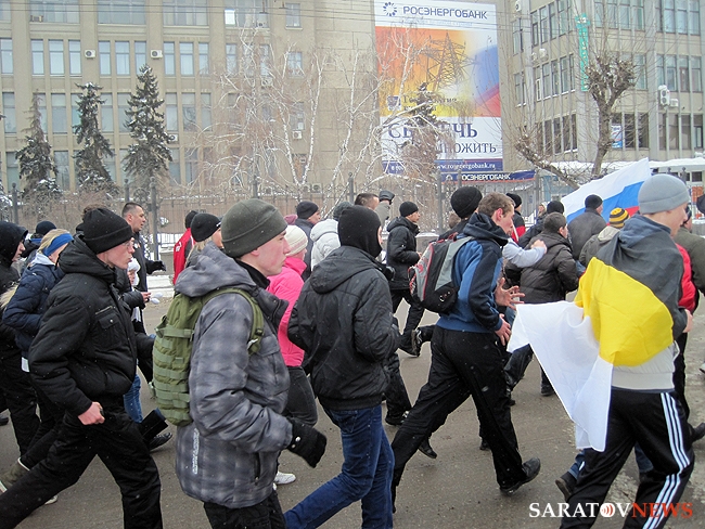 23 февраля в Саратове прошла очередная "Русская пробежка". В акции приняло участие около 80 человек, преимущественно дети и подростки.