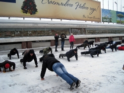 Начиная с 14.15, активисты около 40 минут проводили спортивные соревнования, в которых приняли участие обычные граждане, пришедшие в выходной на "Театралку". Некоторые выражали желание прийти на следующую "пробежку".