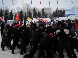 Спортивное мероприятие было организовано "Русской силой" и началось около 14.00 у памятника Чернышевскому. После легкой разминки и построения, колонна ребят с флагами, скандируя "Русский - значит трезвый" пробежала по проспекту Кирова, откуда свернула на Театральную площадь города, где состоялась главная часть мероприятия.