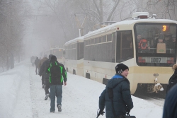 Из-за сложных погодных условий в эти минуты прекратил движение трамвай маршрута №3. По сообщениям очевидцев, транспорт не может преодолеть подъем на мост через 50 лет Октября от 3-й Дачной в сторону "Торгового центра". Скопилось несколько составов.