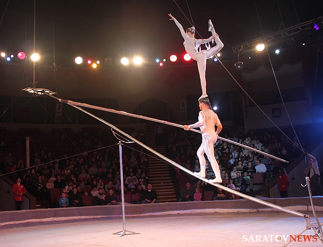 В начале марта в Саратове завершаются гастроли московского цирка на Цветном Бульваре им. Юрия Никулина. В феврале столичные гости представили в Саратове новую программу "Мир цирка".