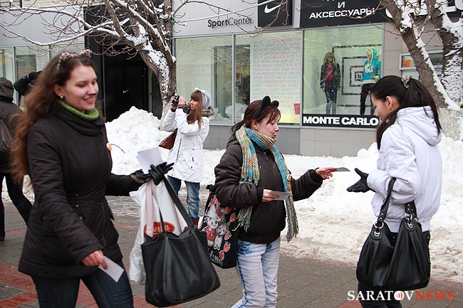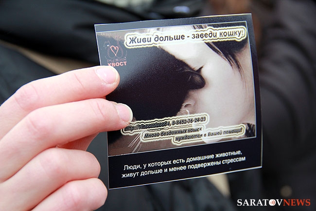 1 марта во Фрунзенском районе Саратова состоялась акция, посвященная Дню кошек. Участники мероприятия в костюмах кошек и котов поздравлять жителей города с праздником, раздавая листовки на проспекте Кирова. Прохожим вручались также фотографии животных, которые ищут новых хозяев или нуждаются в помощи.
