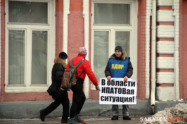 1 марта возле правительства Саратовской области на Московской, 72 прошел пикет против губернатора региона Павла Ипатова. Результатом стала доставка организатора акции, заместителя координатора областного отделения ЛДПР Николая Асафьева в отдел полиции.
