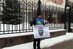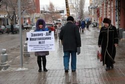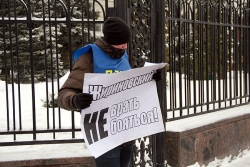После акции протеста Николая Асафьева вместе с плакатами доставили в Волжский отдел полиции.