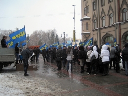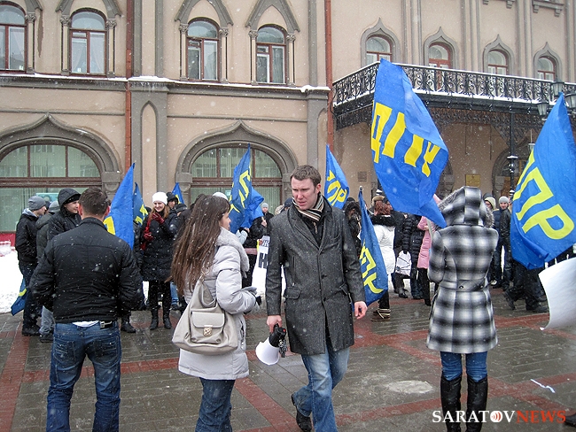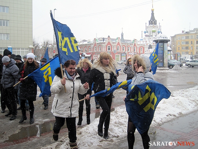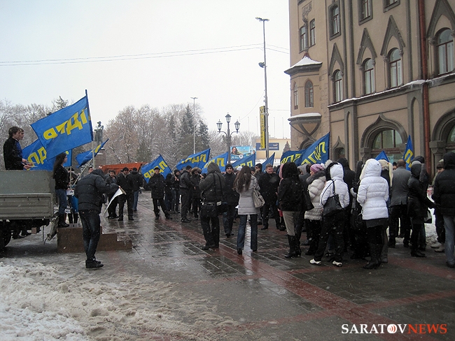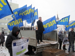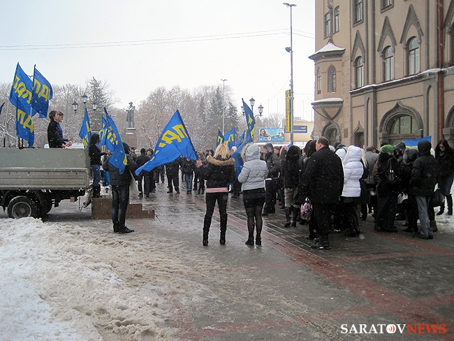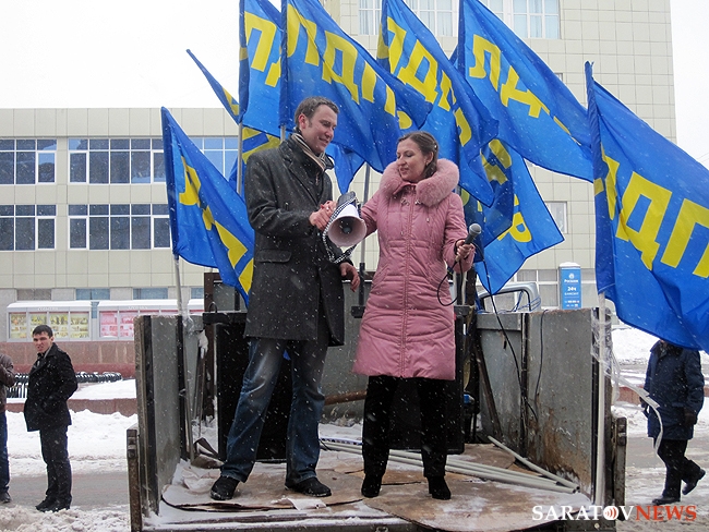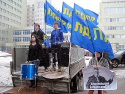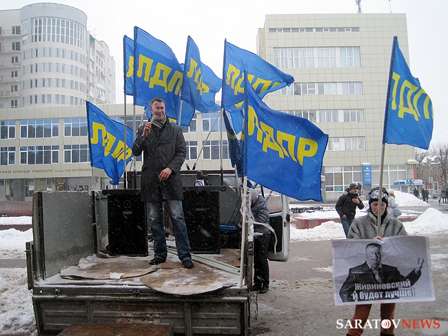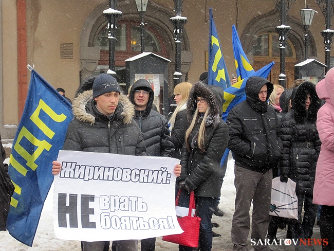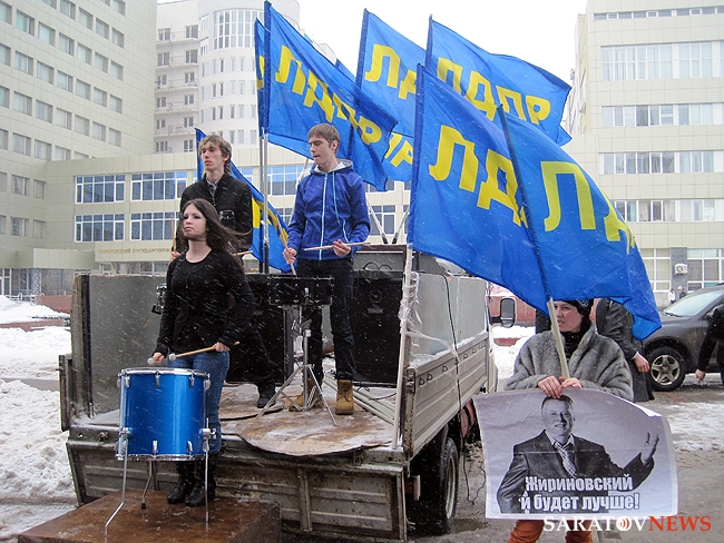 Около получаса назад в Саратове завершился короткий десятиминутный митинг регионального отделения "Либерально-демократической партии России". На площадке напротив консерватории имени Собинова собралось примерно 50 активистов, перед которыми сначала выступила группа барабанщиков, а после с импровизированной трибуны в виде бортовой "Газели" обратилась к соратникам координатор реготделения Юлия Абрамова. Она призвала отдать свой голос 4-го марта за "самого опытного политика" в стране Владимира Жириновского.