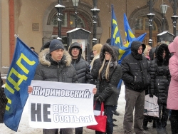 Примечательным оказался эпизод, когда в ряды активистов пробрался гражданин, и начал одиночными выкриками агитировать голосовать за конкурента Жириновского по президентской гонке Владимира Путина. Мужчина пригрозил выступавшей в тот момент Абрамовой, что "Путин придет и надерет уши".