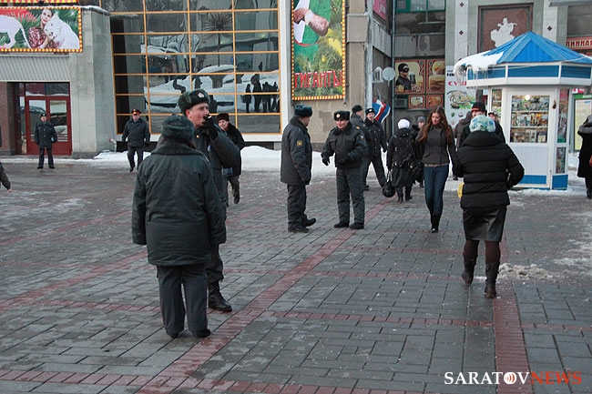 5 марта в 18.30 у саратовского цирка должен был состояться флешмоб, где возмущенные минувшими выборами высказали бы свое недовольство. Однако, перед акцией на площади Кирова собралось значительное количество полицейских, которые не дали даже развернуть плакаты.