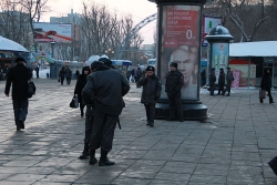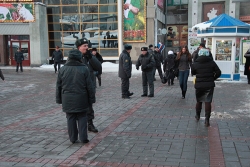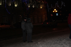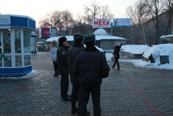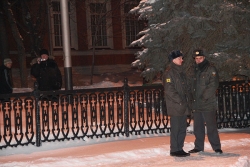 К цирку подогнали 2 полицейских автобуса-"бычка", "Газель" и "УАЗ-буханку". Всего сотрудников правоохранительных органов оказалось в том месте порядка 30. Поначалу были попытки запрещения ведения фото-, видеосъемки, если снимающий не предъявлял журналисткого удостоверения.