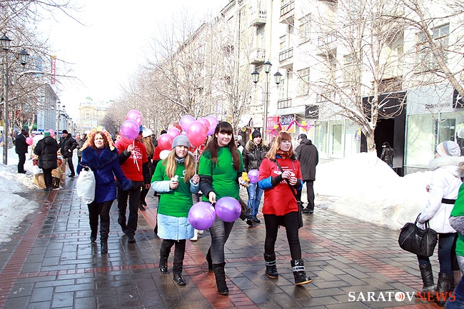 7 марта на проспекте Кирова в Саратове состоялась городская молодежная акция "Настоящая леди". Акция, которую организовали Молодежное общественное собрание города Саратова, городской комитет по образованию, Городской молодежный центр, была посвящена Международному женскому дню.