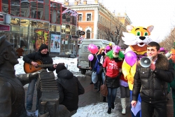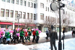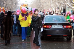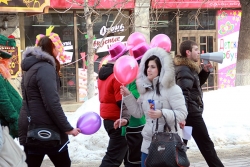 Девушки и парни устроили шествие по проспекту Кирова от цирка до Консерватории, скандируя поздравления: "С 8-м марта!", "С праздником!" и т.д. Участники мероприятия раздавали проходящим женщинам и девушкам воздушные шары с надписью "Настоящая леди" и подарки.