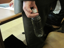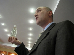 Для наглядности мужчина достал маленькую бутылочку мутной воды, заявив, что именно такой жидкостью местные "дети чистят зубы. Вот жители коренные бросают дома, потому что умыться нечем. Я не обманываю, я ее сегодня с собой привез", - говорил, срываясь на крик, Мотин, сотрясая бутыль над головой. Стоит отметить, что из емкости исходил неприятный запах, так что после непродолжительной демонстрации глава администрации спрятал доказательство своих слов под стол.