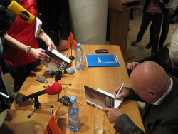 Именитый гость Саратова затронул тему посещения воинской части под Татищево, в которую он вместе с американскими журналистами приезжал несколько лет назад. По словам Познера, состояние внутри части доставило ему приятные впечатления, поскольку территория там была благоустроена. Однако ситуация в райцентре его поразила, "потрясло нежелание поправить собственное окно, помыть забор". При этом журналист вспомнил, что жители Татищего, отвечая на его вопрос, почему они не идут работать на местную птицефабрику с хорошими зарплатами, сказали: "Там плохо пахнет".