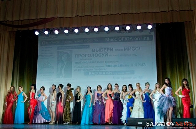 В Саратовской государственной юридической академии состоялось подведение итогов конкурса "Мисс Юридическая академия - 2012". 19 самых красивых студенток вуза пели, танцевали, дефилировали в вечерних платьях, некоторые из которых были сшиты конкурсантками самостоятельно.
