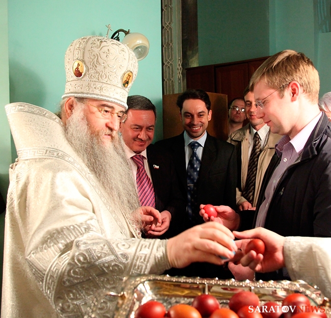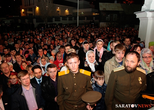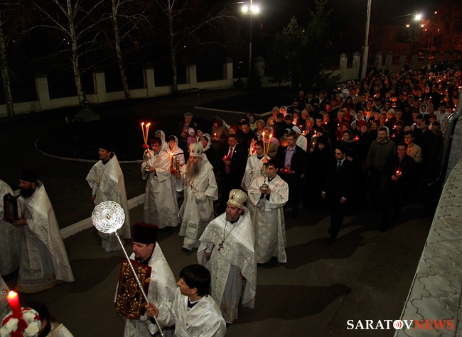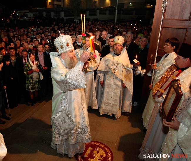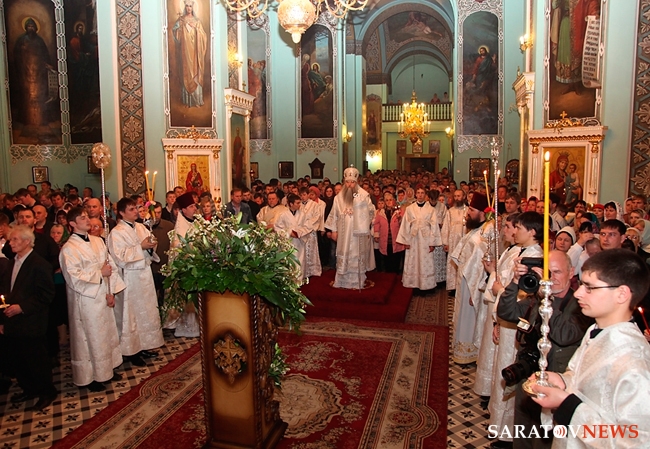 В ночь с 14 на 15 апреля в Духосошественском кафедральном соборе Саратова Митрополит Саратовский и Вольский Лонгин совершил Пасхальное богослужение. На мероприятии присутствовали представители власти, деятели науки и искусства.