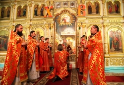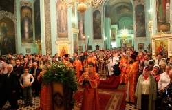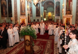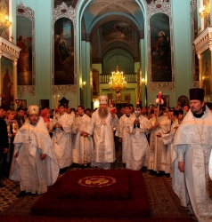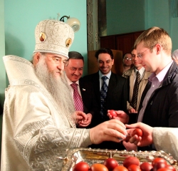 По окончании богослужения Его Высокопреосвященство поздравил молящихся с праздником Светлого Христова Воскресения.
