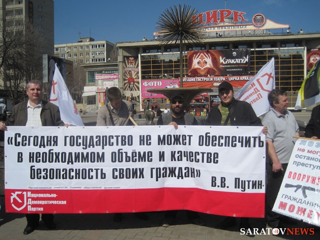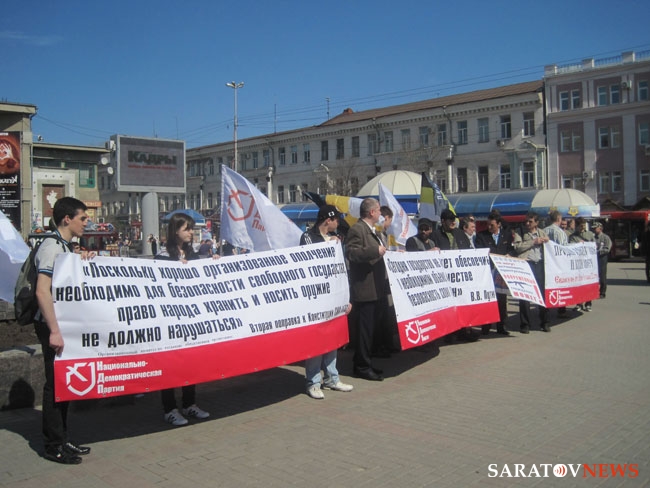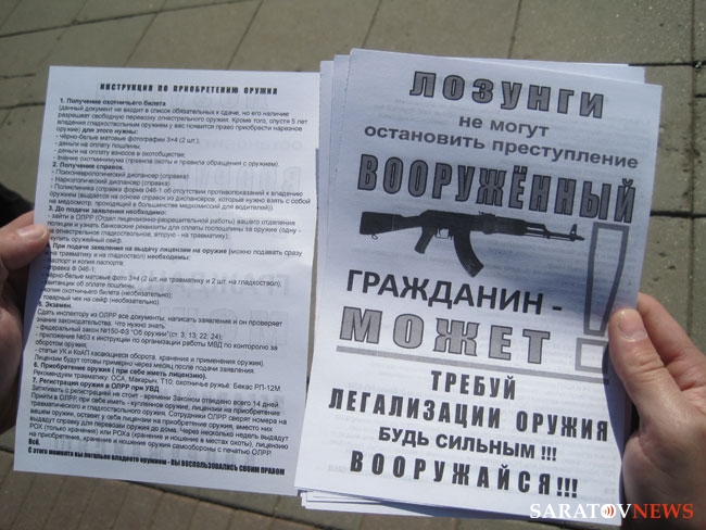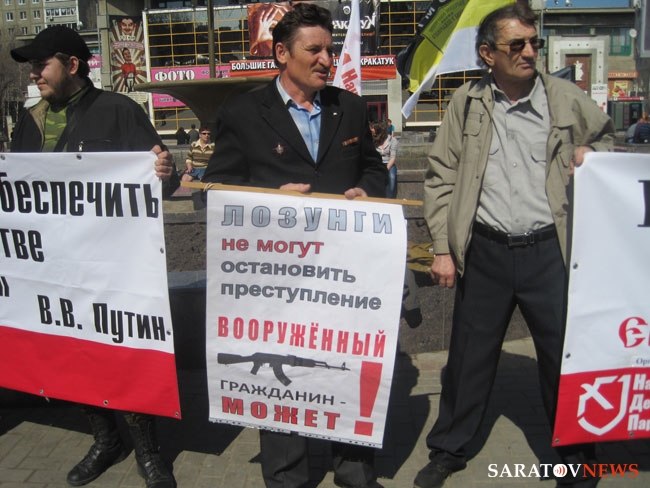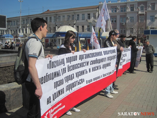 15 апреля в Саратове состоялся пикет "За легализацию оружия". По мнению участников акции, такая мера позволила бы сократить количество уличных преступлений.