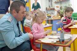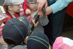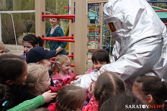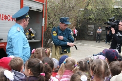 Как информирует пресс-служба регионального ГУ МЧС, пожарные машины подъехали с включенными сиренами, чем очень порадовали ребят. Инспектор Сергей Климов сообщил малышам, что именно такие машины выезжают на тушение пожаров, показал, как устроена машина, как она работает. Когда добрались и до боевой одежды, пожарные каски пошли по кругу. Каждый хотел примерить тяжелый необычный головной убор.