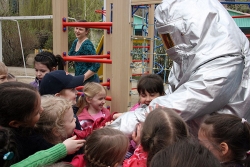 После этого ребята и их гости в форме МЧС проследовали в садик, где ребята ответили на вопросы инспекторов о том, как вызвать пожарных, что нужно говорить, разговаривая с диспетчером МЧС. Ребятам дали сотовый телефон, по которому они попробовали в импровизированной форме позвонить в пожарную охрану и вызвать правильно огнеборцев.