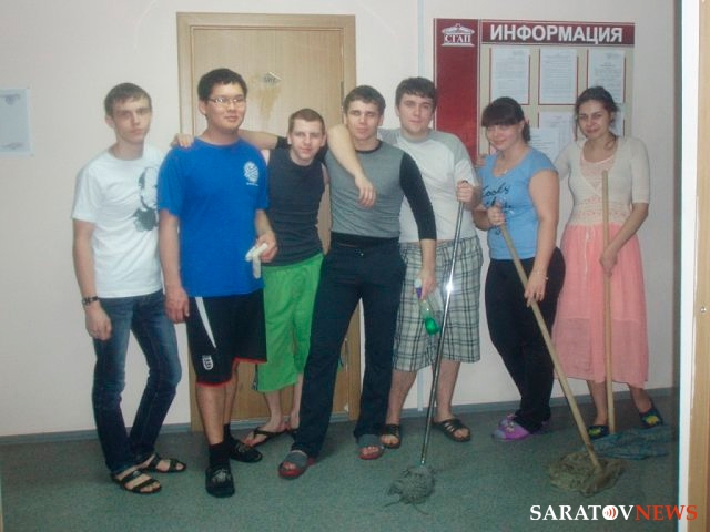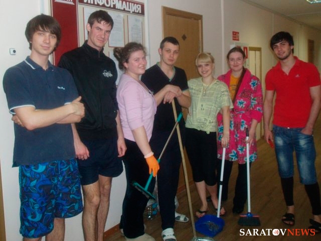 В общежитии № 4 Саратовской государственной юридической академии состоялись субботник и конкурс "Самый лучший этаж". Особо отличились студенты, проживающие на 10 этаже (староста Елена Хадыка), староста 5 этажа Гаджи Карчигаев, Булат Багауов, Вадим Попов и Павел Зубайкин.
